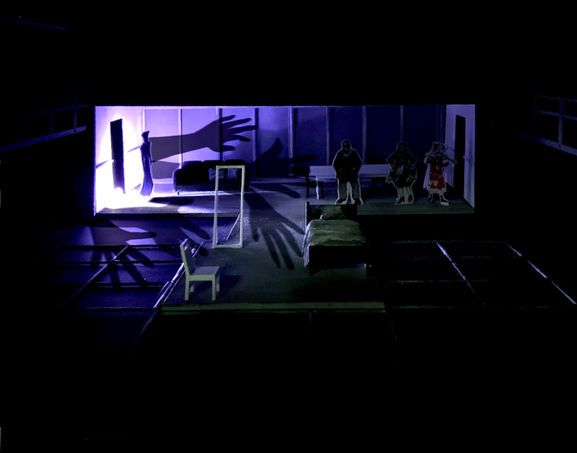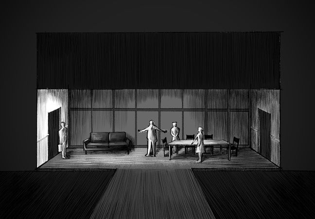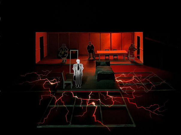 The design explores Gregor’s loneliness and emotional suffocation within his family. His room is physically separated from the communal space to emphasise disconnection, positioned closer to the audience to evoke intimacy and draw viewers into his inner world. The distant placement of the family area heightens the sense of alienation, making their actions appear unreachable and uncontrollable. Through this spatial contrast, the design translates psychological tension into physical form.